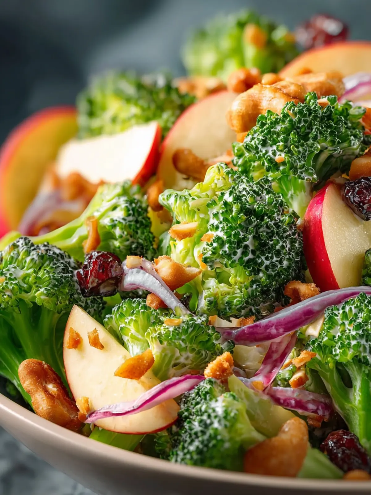 Apples: For a refreshing zing, I suggest using crisp, tart apples like Granny Smith or Honeycrisp. Their juiciness adds a delightful contrast to the crunchy broccoli while infusing the salad with natural sweetness.