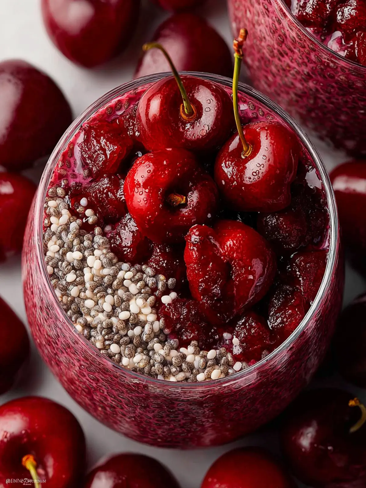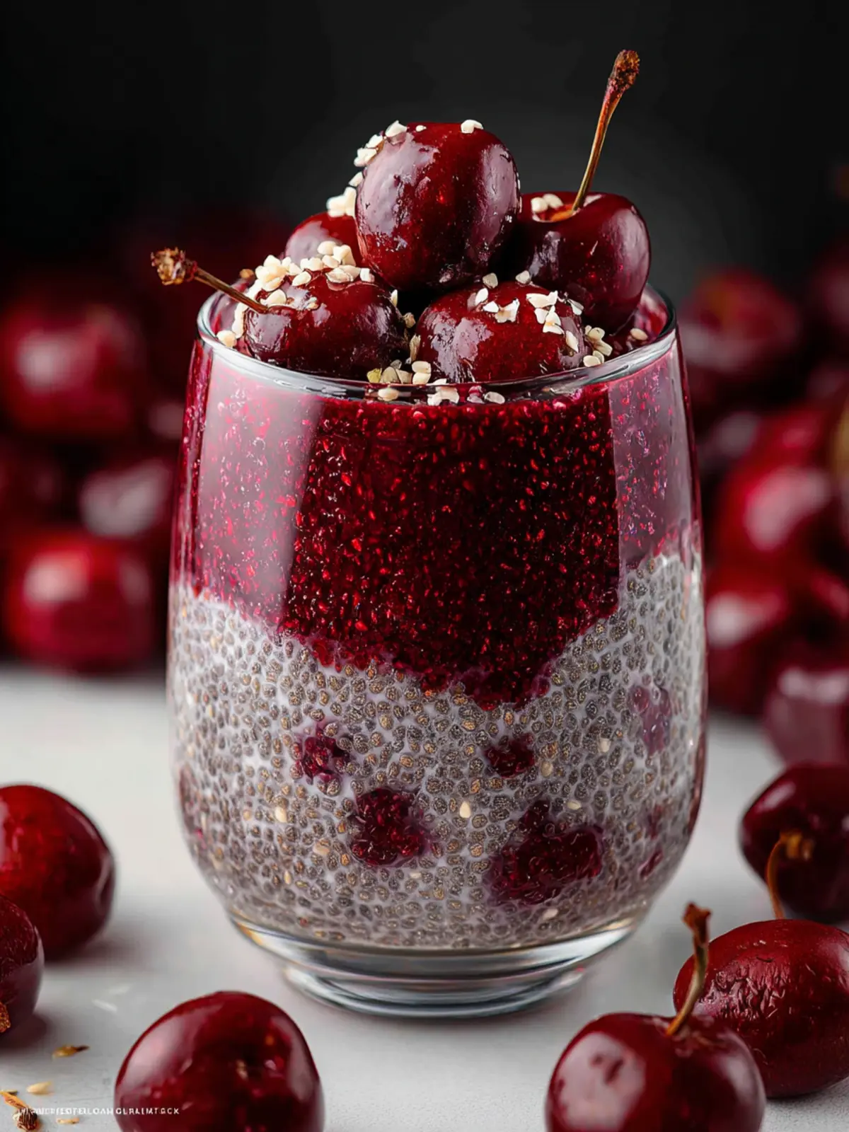 • Health Benefits: Chia seeds can absorb up to 10-12 times their weight in water, giving this pudding a satiating quality that keeps hunger at bay longer than other sweets. Paired with the antioxidants from cherries, it’s a powerhouse for skin and heart health.