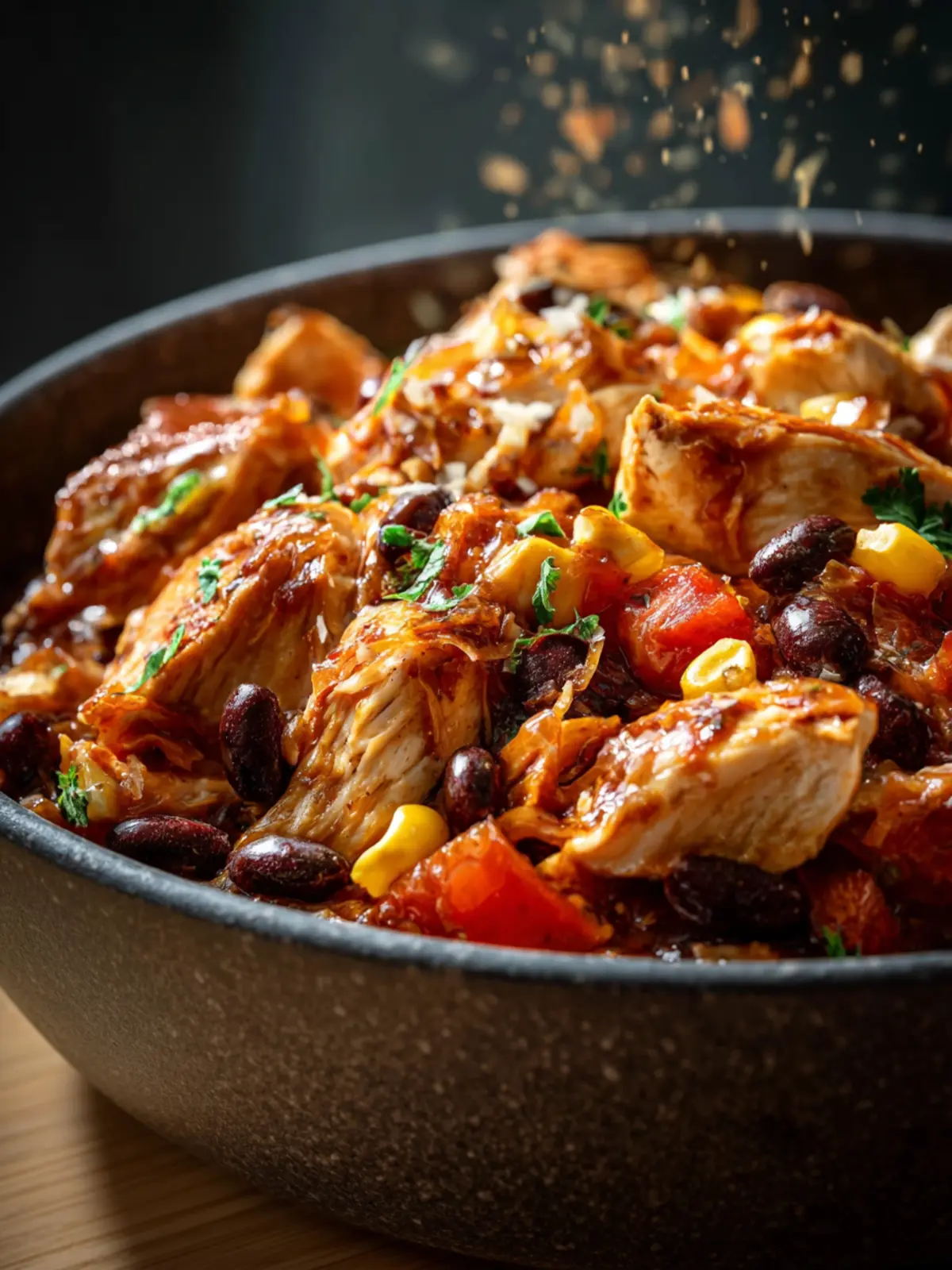 - Add black beans, corn, salsa, and taco seasoning on top of the chicken.