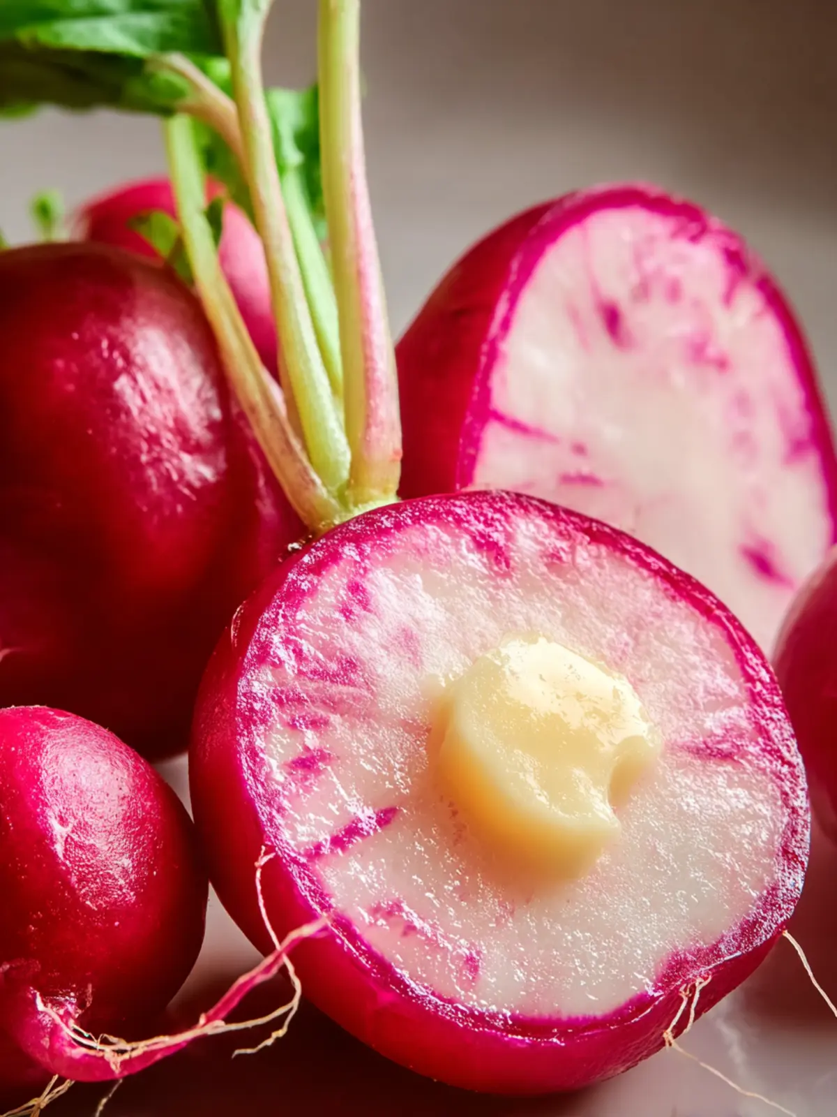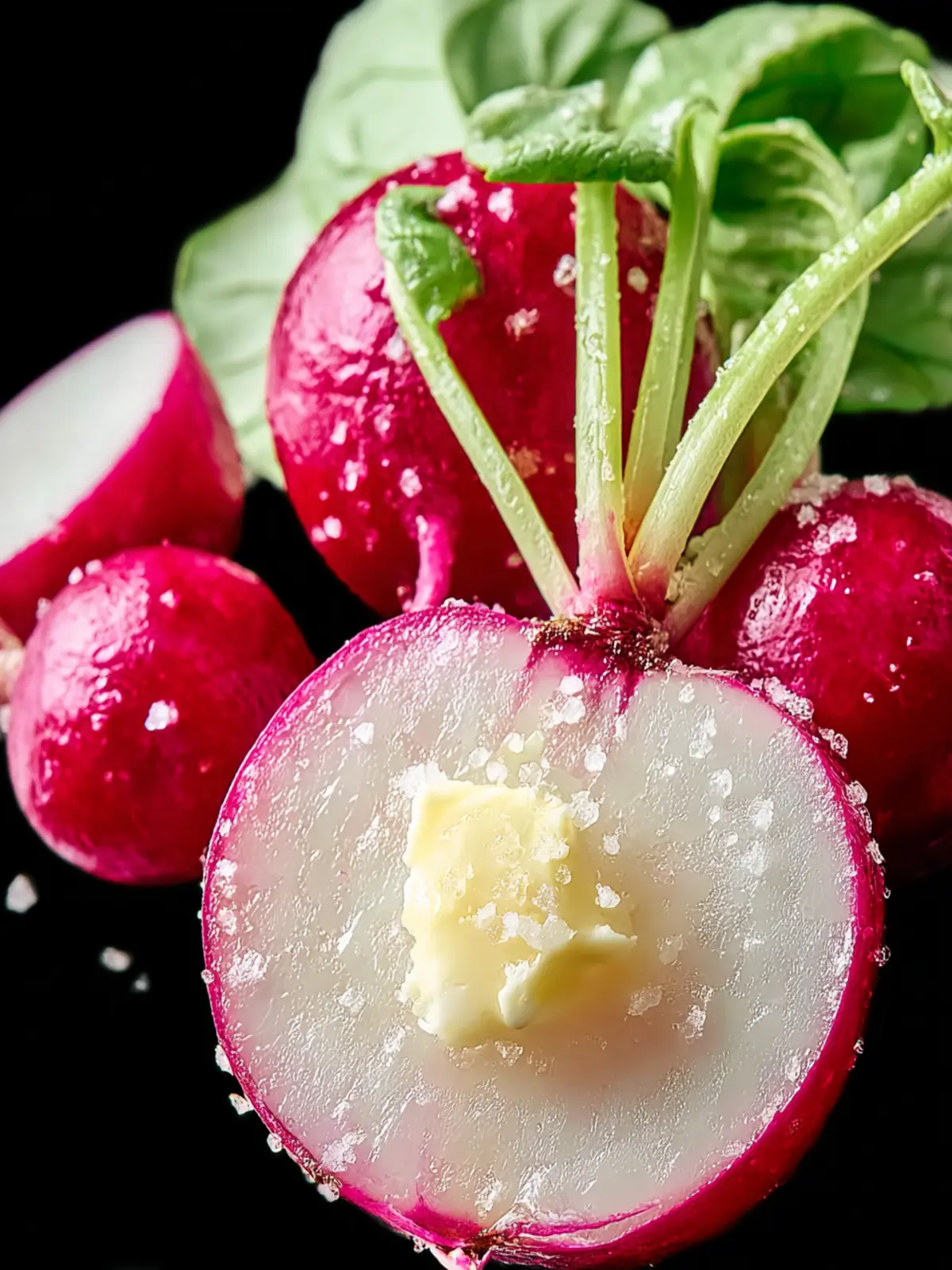 Health Benefits: Radishes are low in calories yet packed with vitamin C, potassium, and antioxidants. Pairing them with butter offers essential fats, making this snack not only delightful but nourishing too.