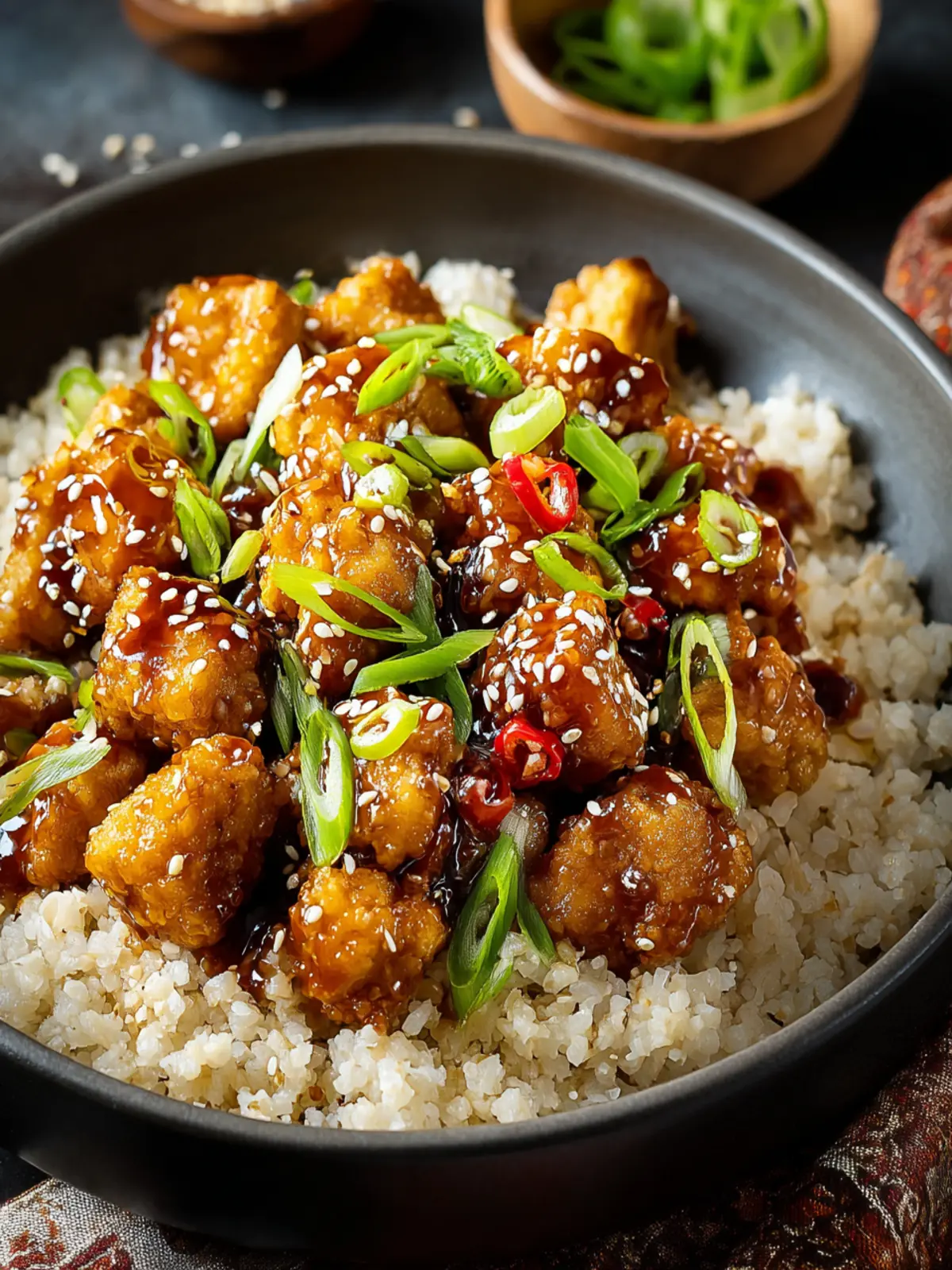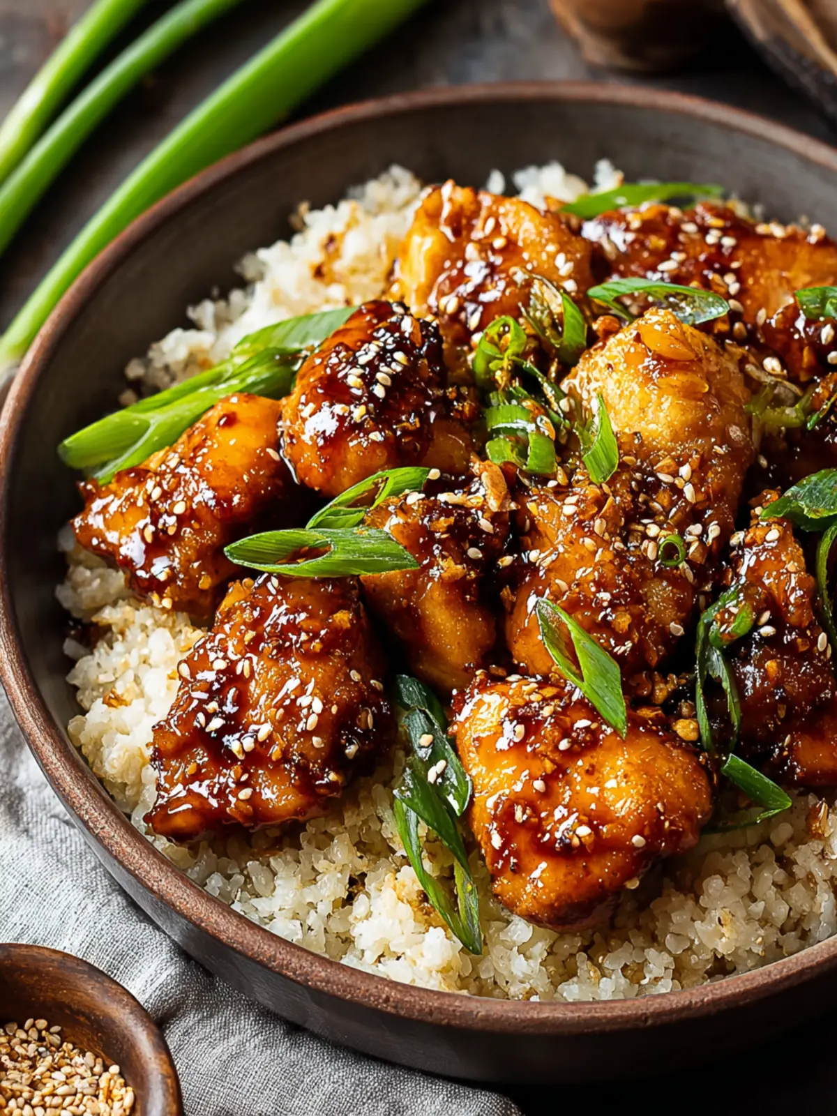 - A fluffy bed of jasmine or brown rice that soaks up the sweet and savory sauce.