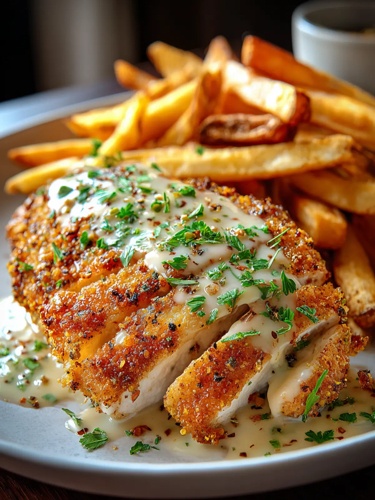 Imagine sinking your teeth into a golden, crispy chicken fillet, perfectly complemented by a creamy Garlic Parmesan Sauce that sends your taste buds into a frenzy. This is not just any meal; this is your new weeknight superstar — the Irresistible Chicken Fillet with Garlic Parmesan Sauce & Fries. Whether you’re coming home from a long day at work or just looking for a delightful dish to impress friends, this recipe hits all the right notes.