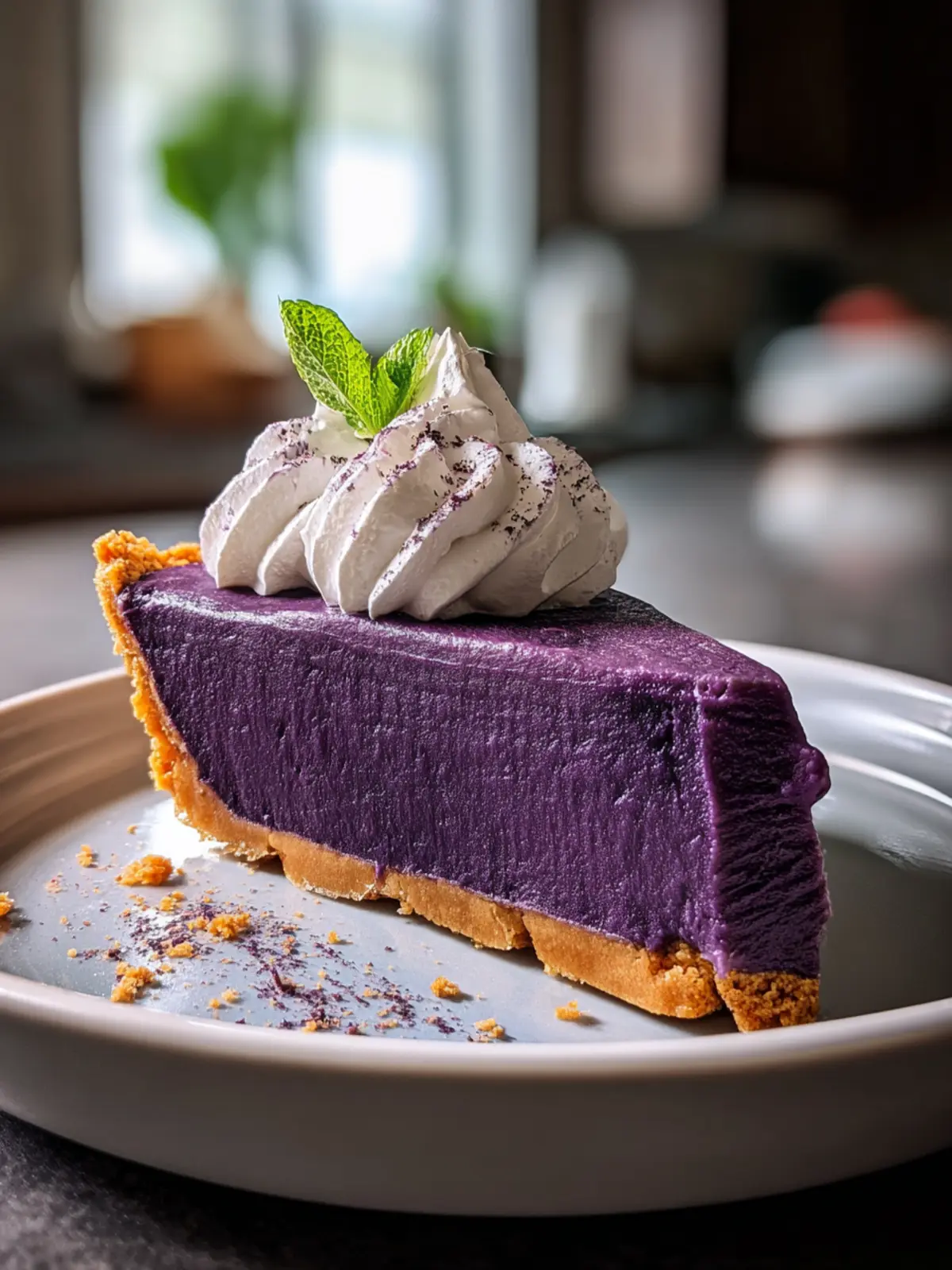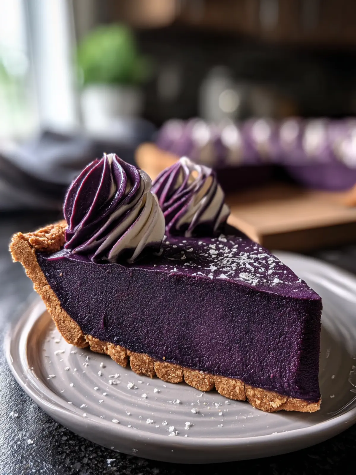 Instead of standard whipped cream, top your pie with whipped coconut cream. It adds a tropical layer of flavor that perfectly contrasts with the earthy sweetness of the purple potato filling. Just chill a can of full-fat coconut milk overnight, scoop out the solidified cream, and whip it until light and fluffy.