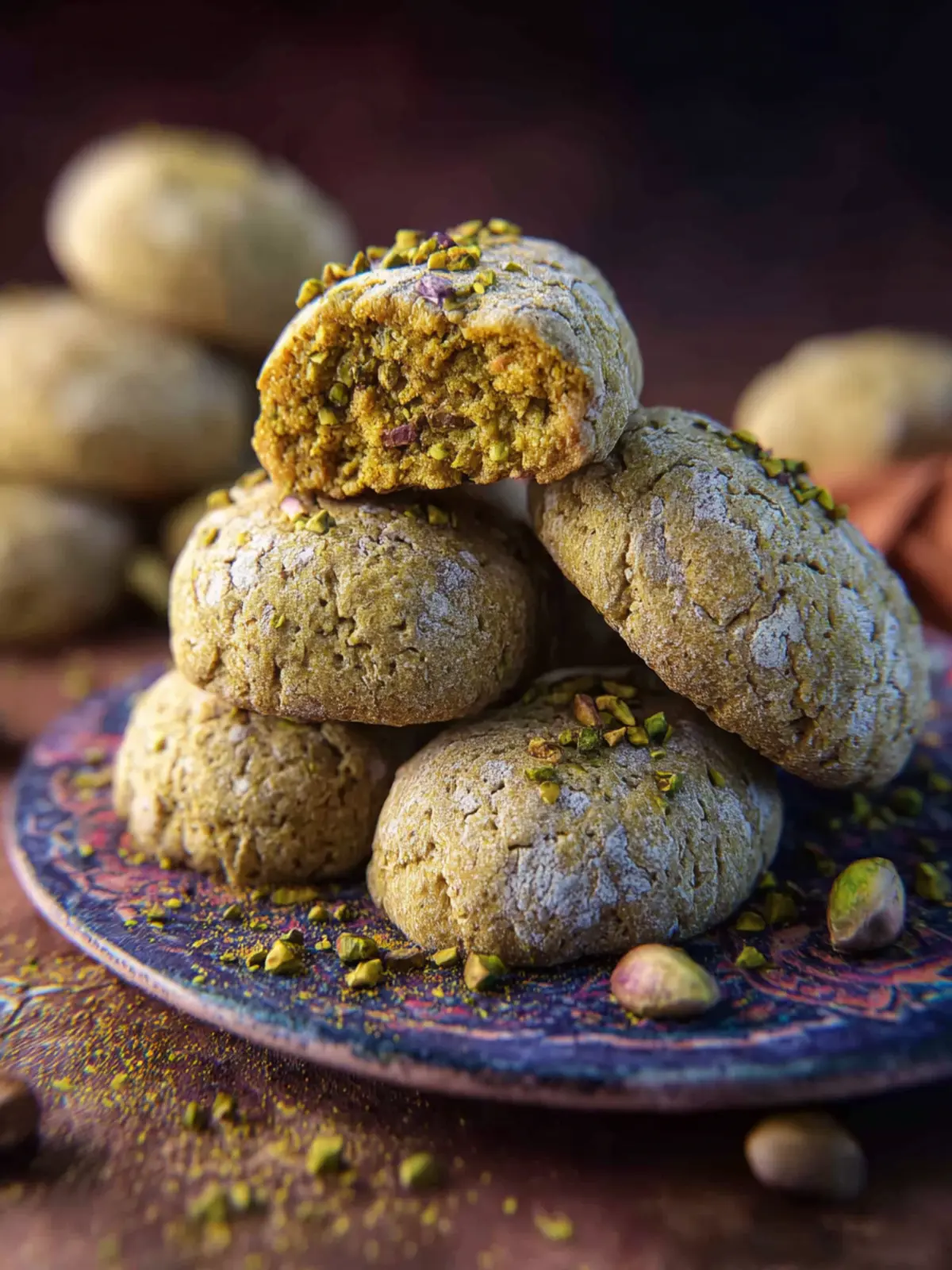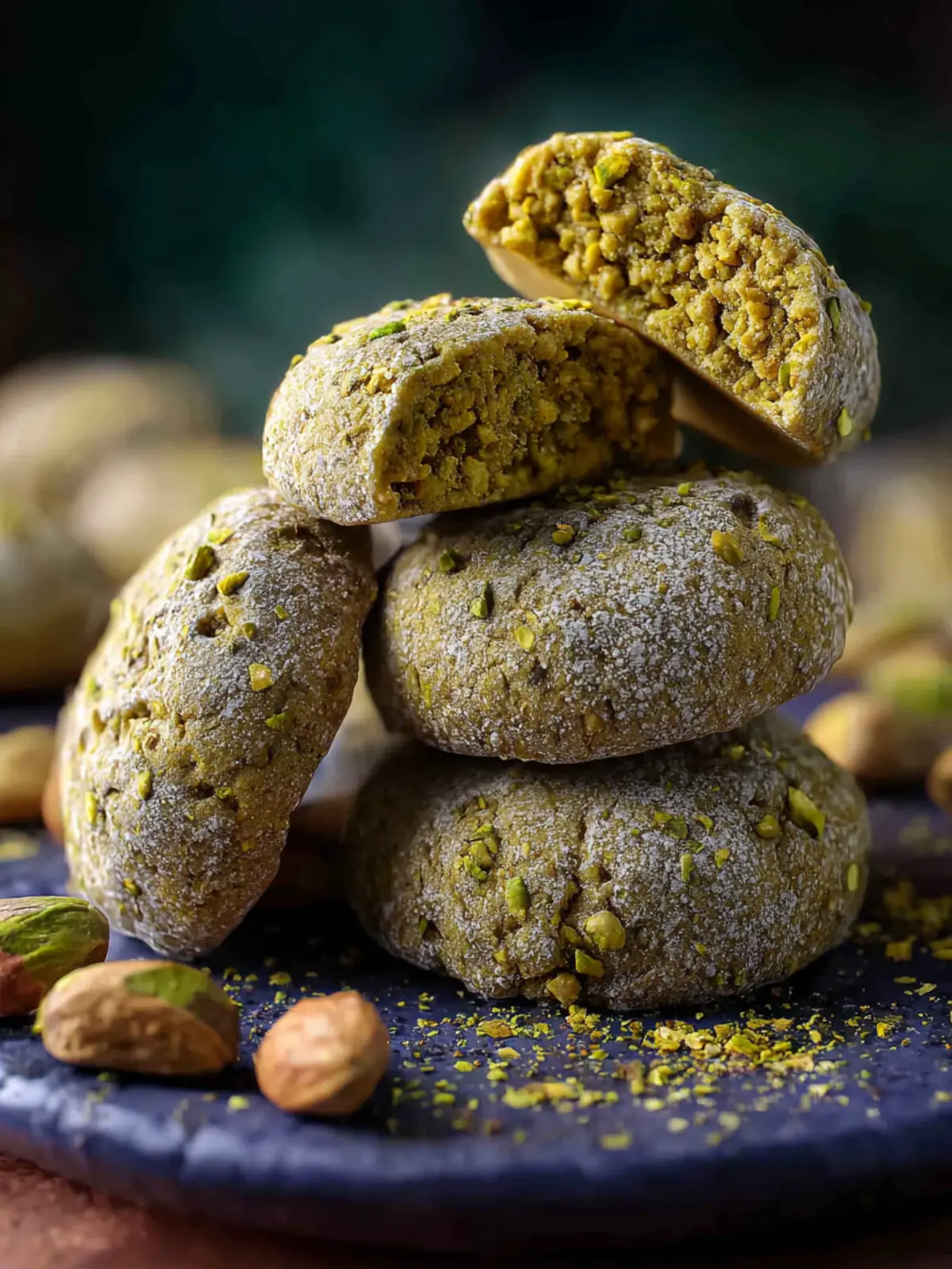Texture Perfection: The balance between crispiness and chewiness sets these cookies apart. The ground pistachios lend a delightful crunch, making them perfect for pairing with your favorite coffee or tea.