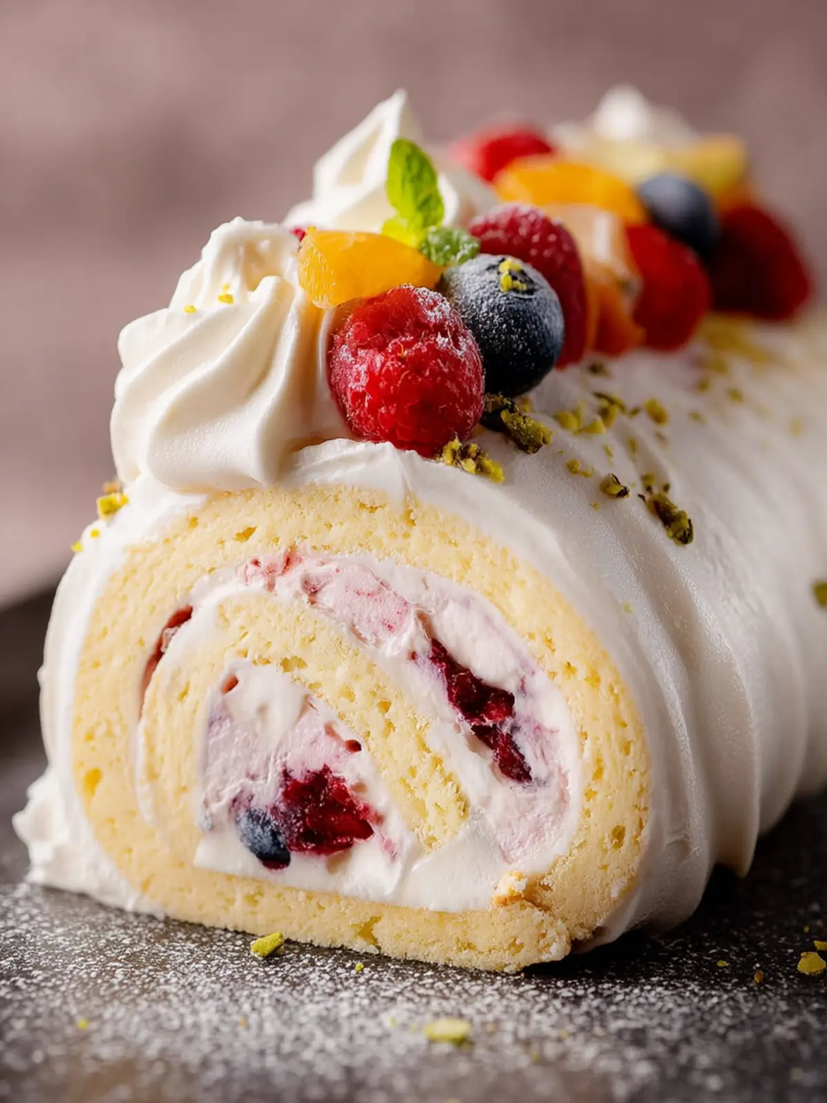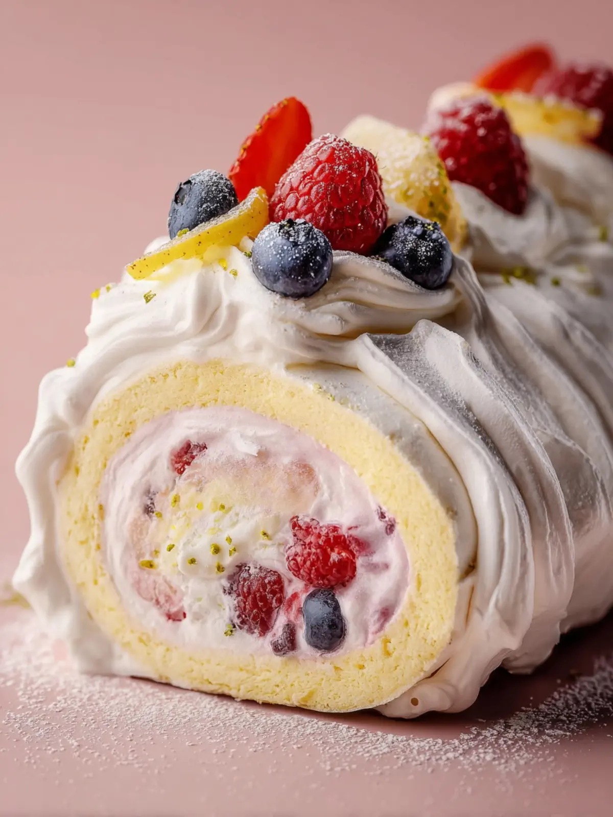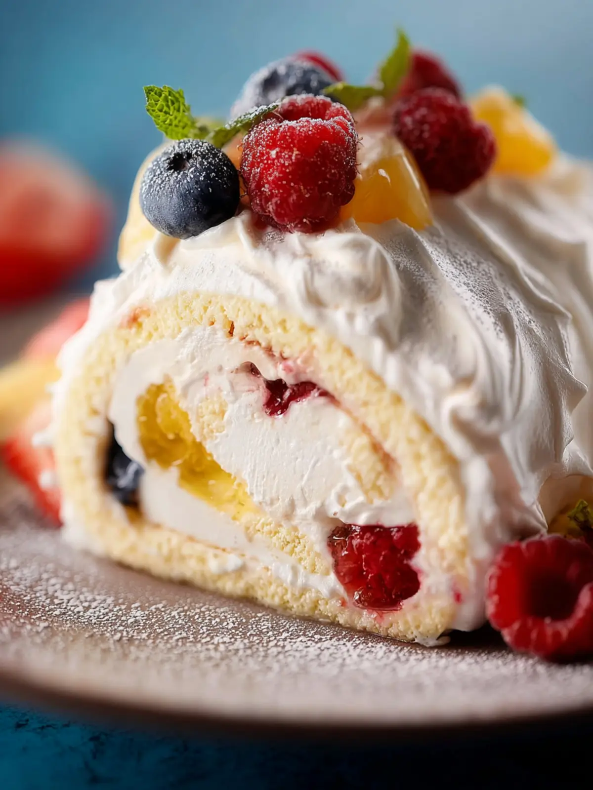 Spectacular Presentation: Once assembled and sliced, the meringue roulade offers a stunning presentation, perfect for Instagram or a dinner party. The spiral of cream and colorful fruits is sure to catch eyes and spark curiosity.