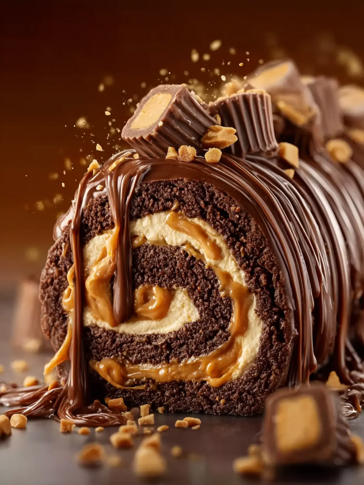 A Peanut Butter Cup Chocolate Roll is an indulgent treat, and every ingredient intensifies the experience, bringing joy with each slice.