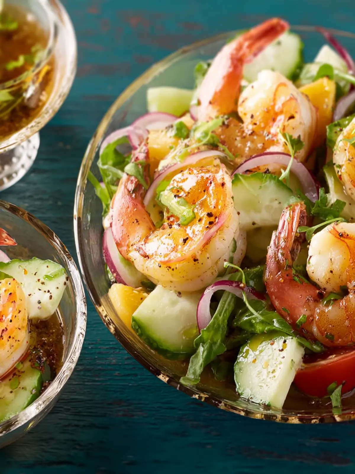 Loaded with protein, this salad boasts about 20 grams per serving, thanks to the shrimp, which supports muscle health and keeps you feeling full longer.
