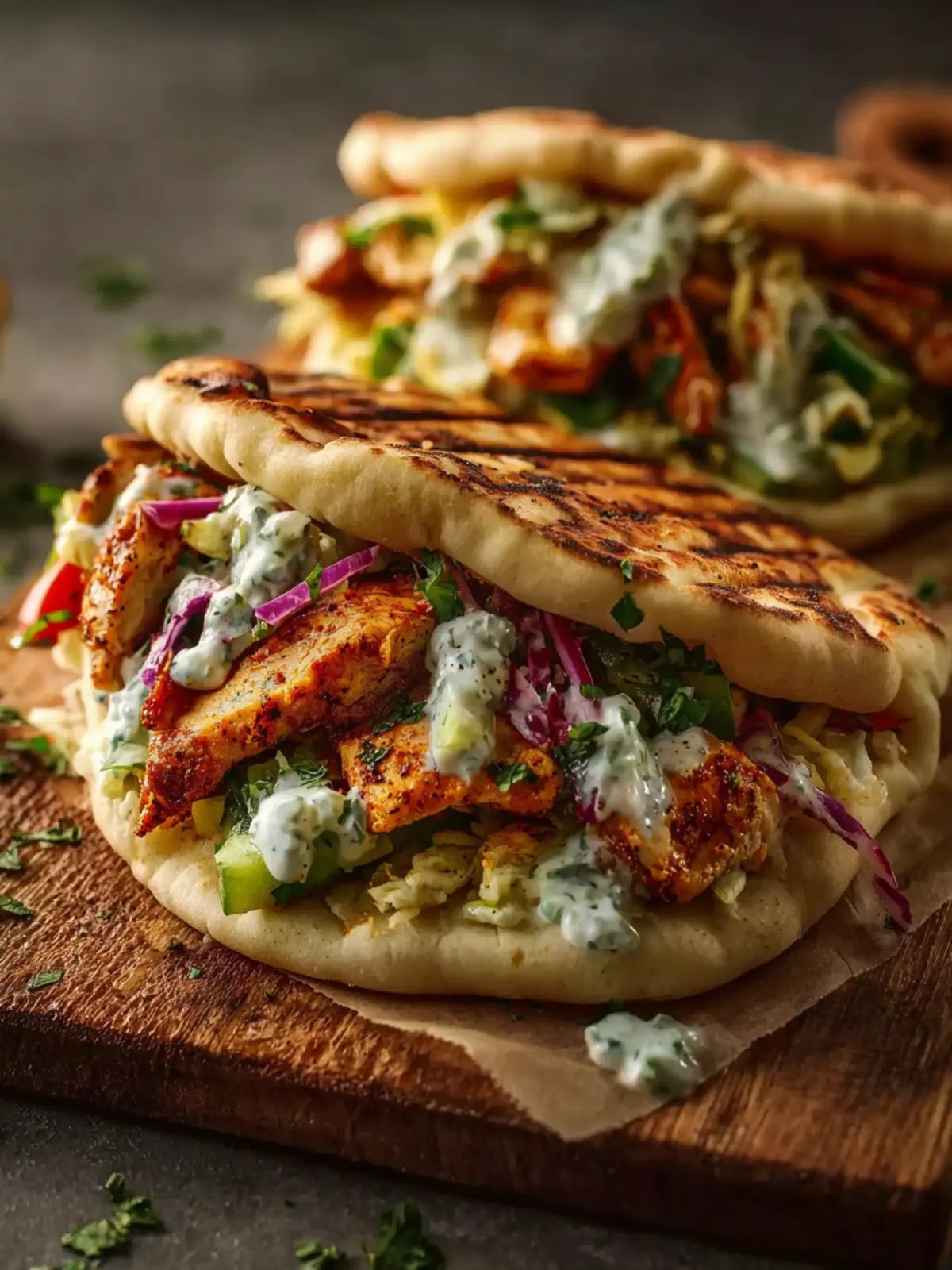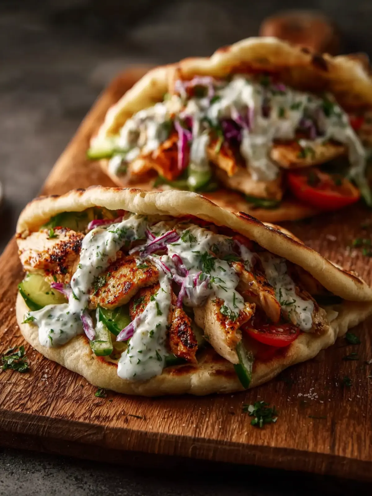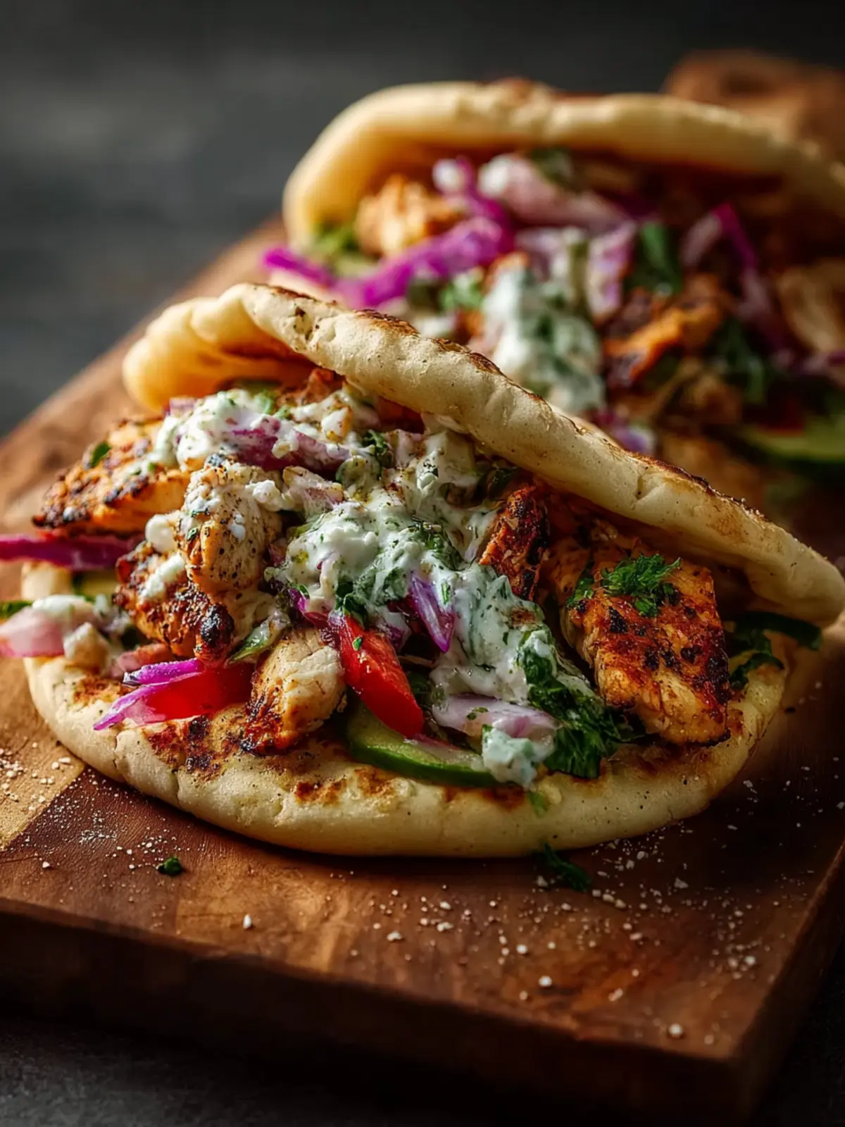 Assemble by layering the chicken and veggies in the pita, adding your favored toppings such as tzatziki or fresh herbs. It’s all about personalizing them to match your taste!