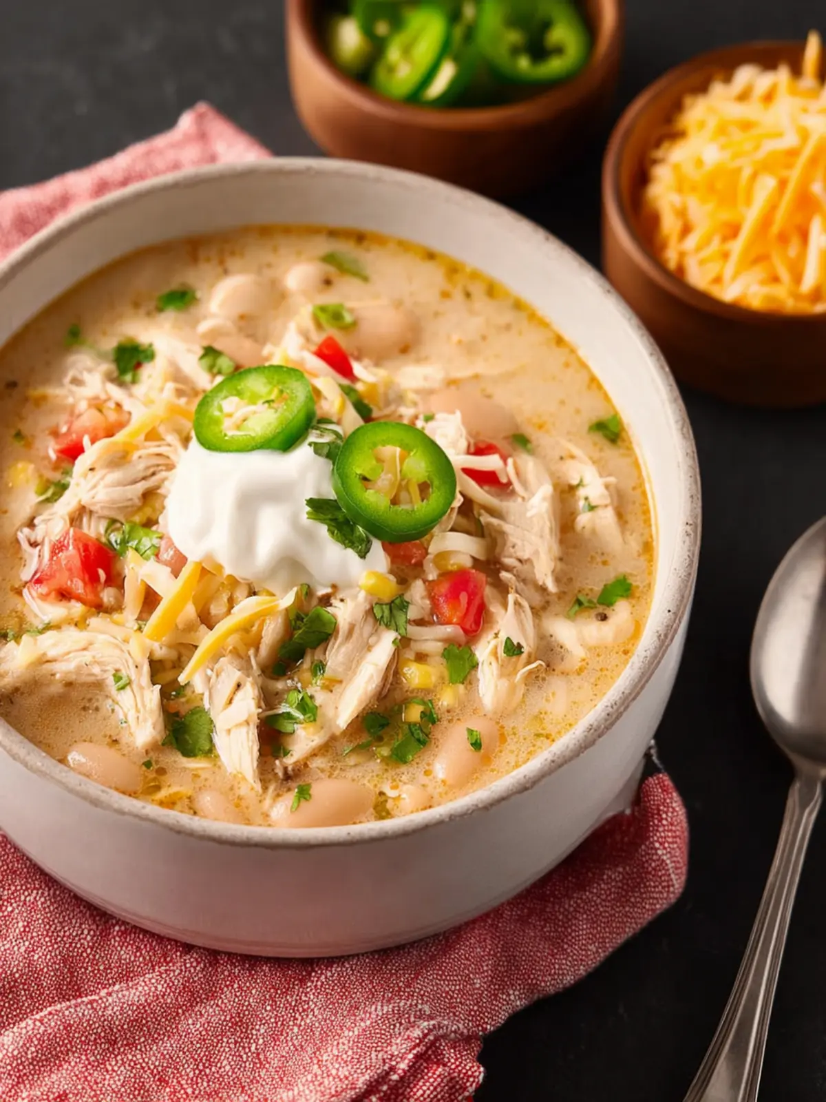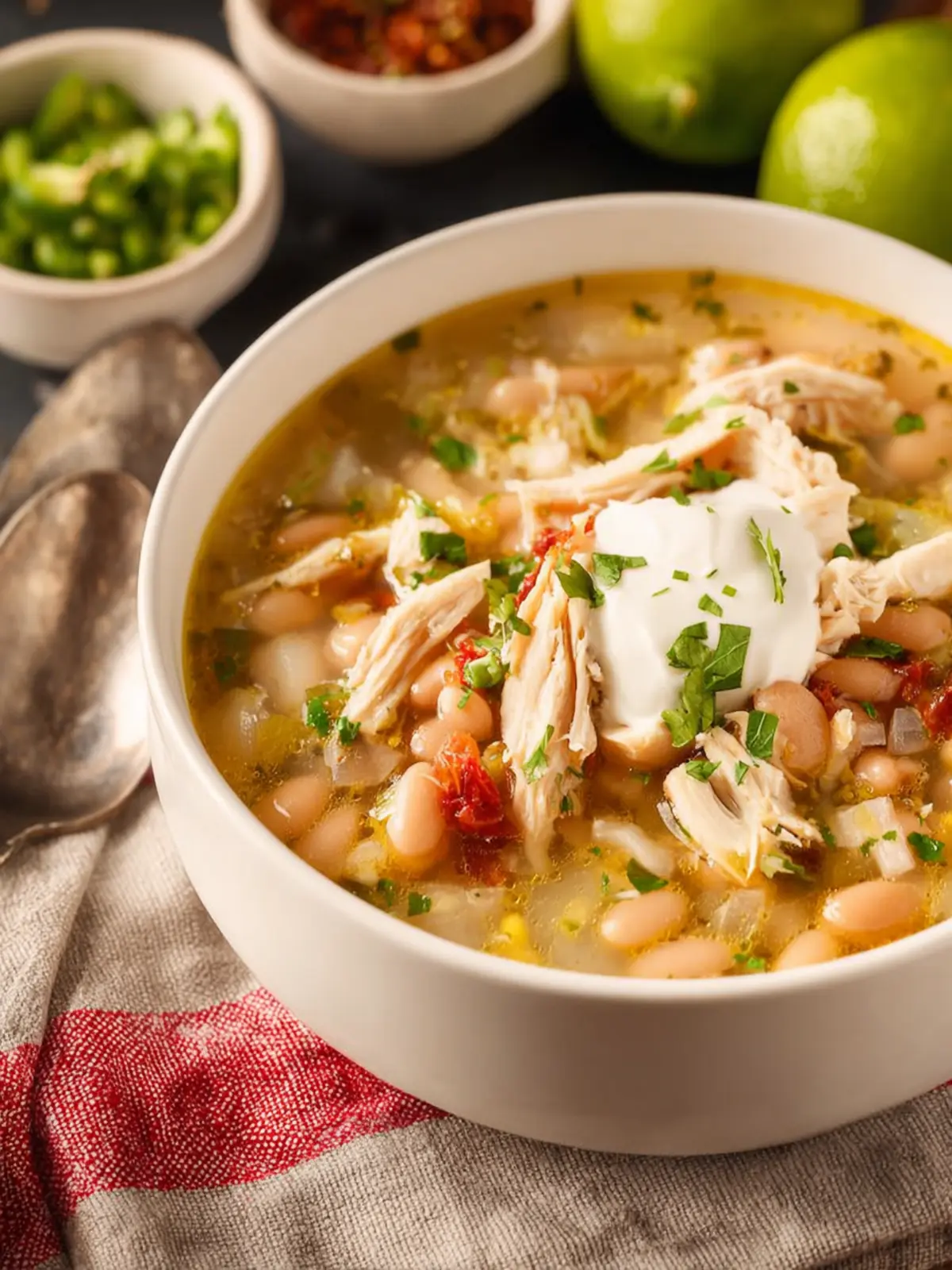 For a cozy and inviting touch, serve your white chicken chili in individual bowls, and set up a toppings bar so everyone can customize their own! This simple addition makes the meal interactive and fun.
